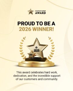 From the Canadian Choice Award: “Each nominee moves through a transparent and credible journey, shaped by community support and expert evaluation.  Their expert panel carefully reviews all qualifying nominees and selects the top three finalists in each category within each region. This evaluation considers service quality, customer feedback, reputation, and community impact. One winner per category per region is selected through a comprehensive review process. This includes questionnaire responses, verified customer reviews, nominator feedback, notable achievements, and demonstrated contributions to the local community. Winners represent the highest standard of excellence, credibility, and impact in their category.”